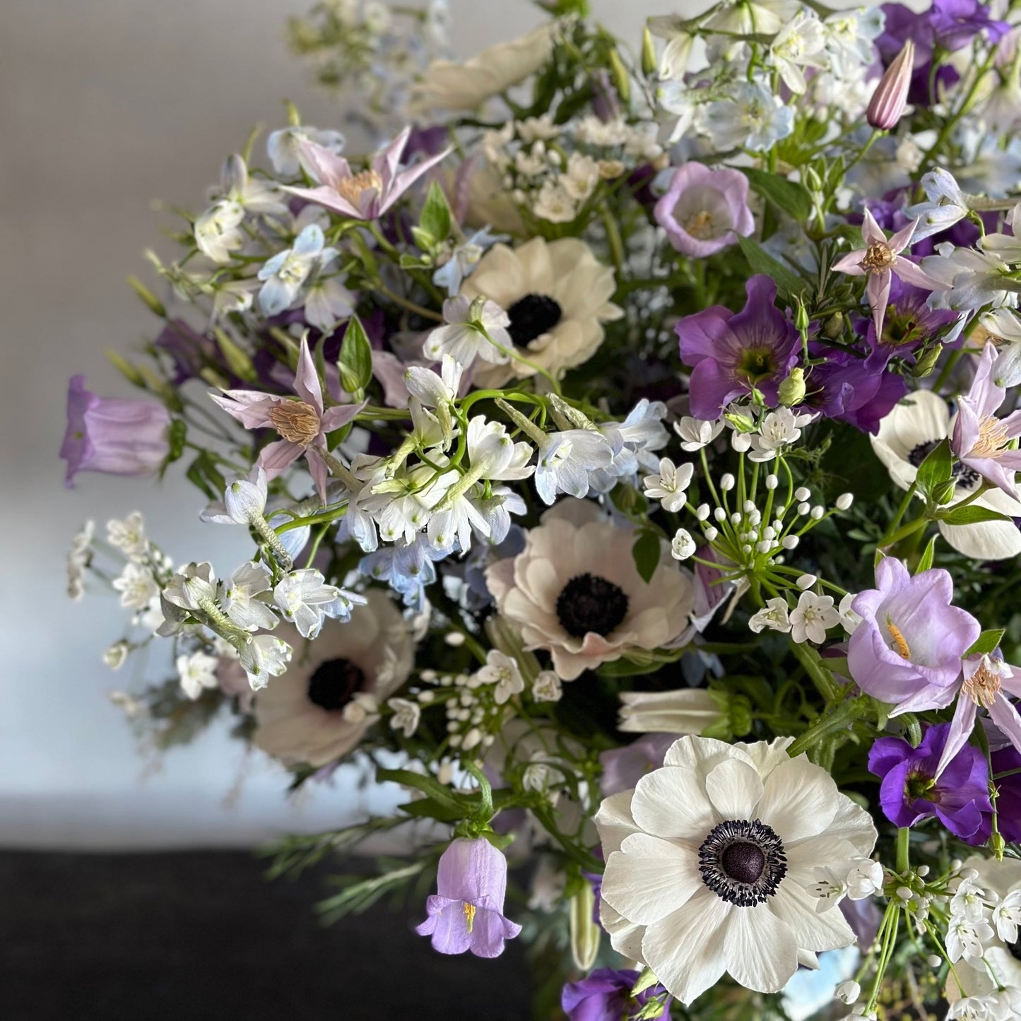 The Florence is a thing of real beauty. Like many of our bouquets, the Florence arrangement is inspired by the look, feel and beauty of an English country garden...and what a country garden that is! Alliums and anemones, alongside the loveliest springtime blooms in shades of deep purple and elegant white, combine to create something truly spectacular.