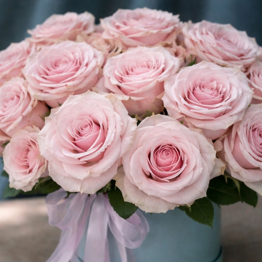 Perfect for marking life's special moments—whether a birthday, anniversary, or a gesture of appreciation—this hatbox arrangement embodies the Pulbrook & Gould commitment to exceptional floristry. A thoughtful gift that impresses with its beauty and longevity, or a luxurious indulgence for yourself, these blush pink roses deliver lasting joy and elevate any occasion with understated sophistication.