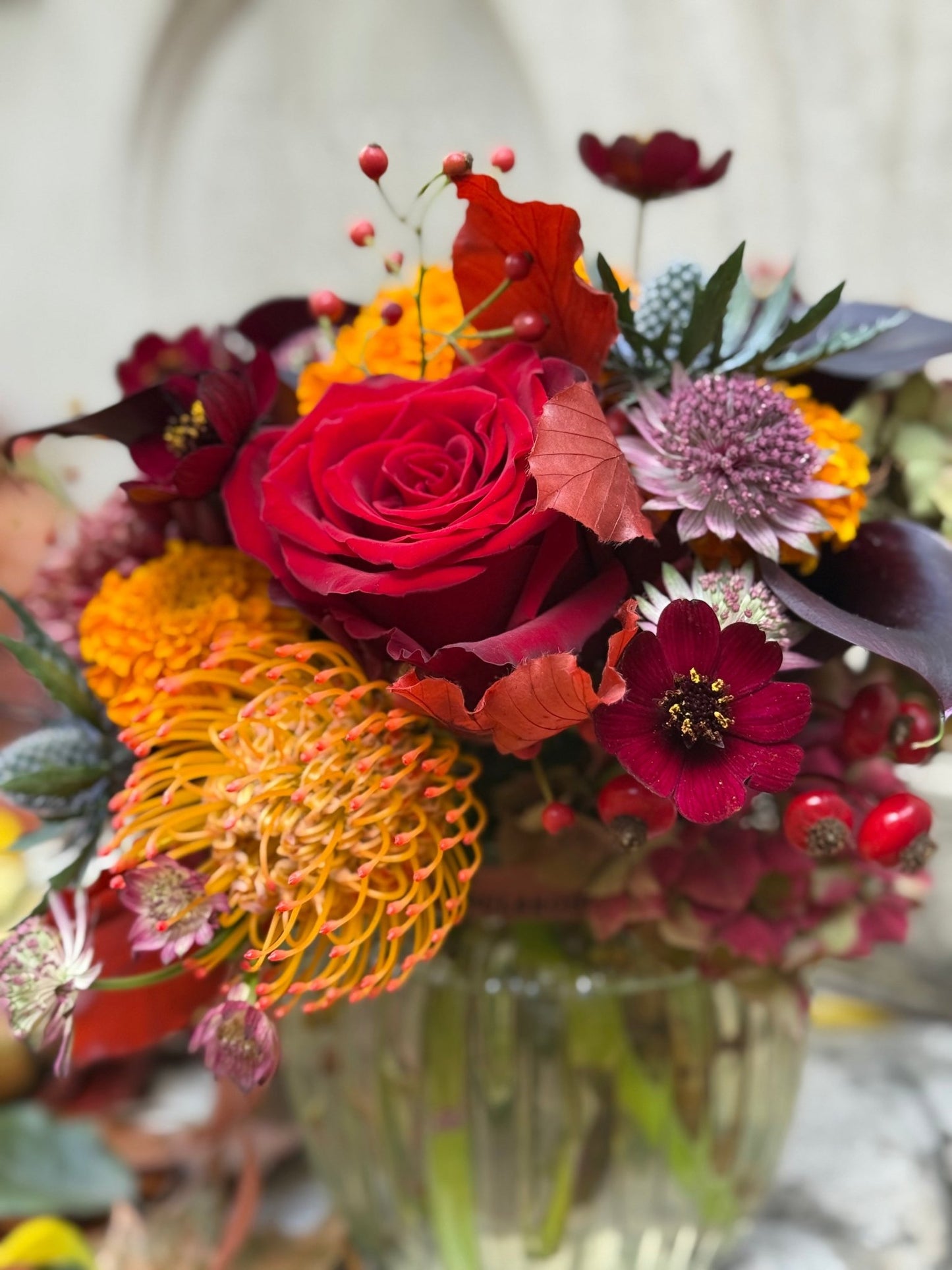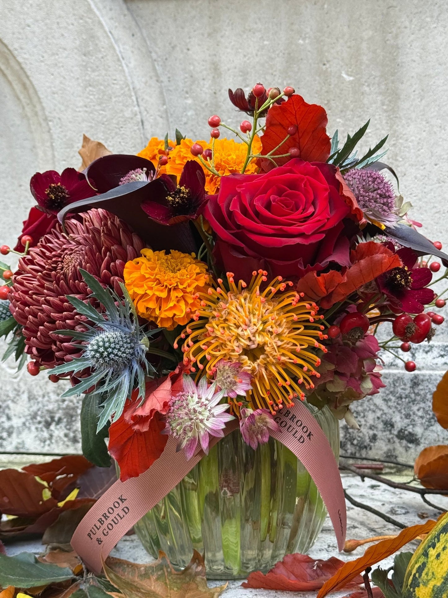 Each Pulbrook and Gould bouquet is a masterpiece, meticulously designed and hand-crafted in our dedicated London workshop. We choose the finest flowers from trusted growers, ensuring the highest quality. Whilst we make every effort to source the exact ingredients, occasionally it may be necessary for our florists to substitute with a similar vase or stem.