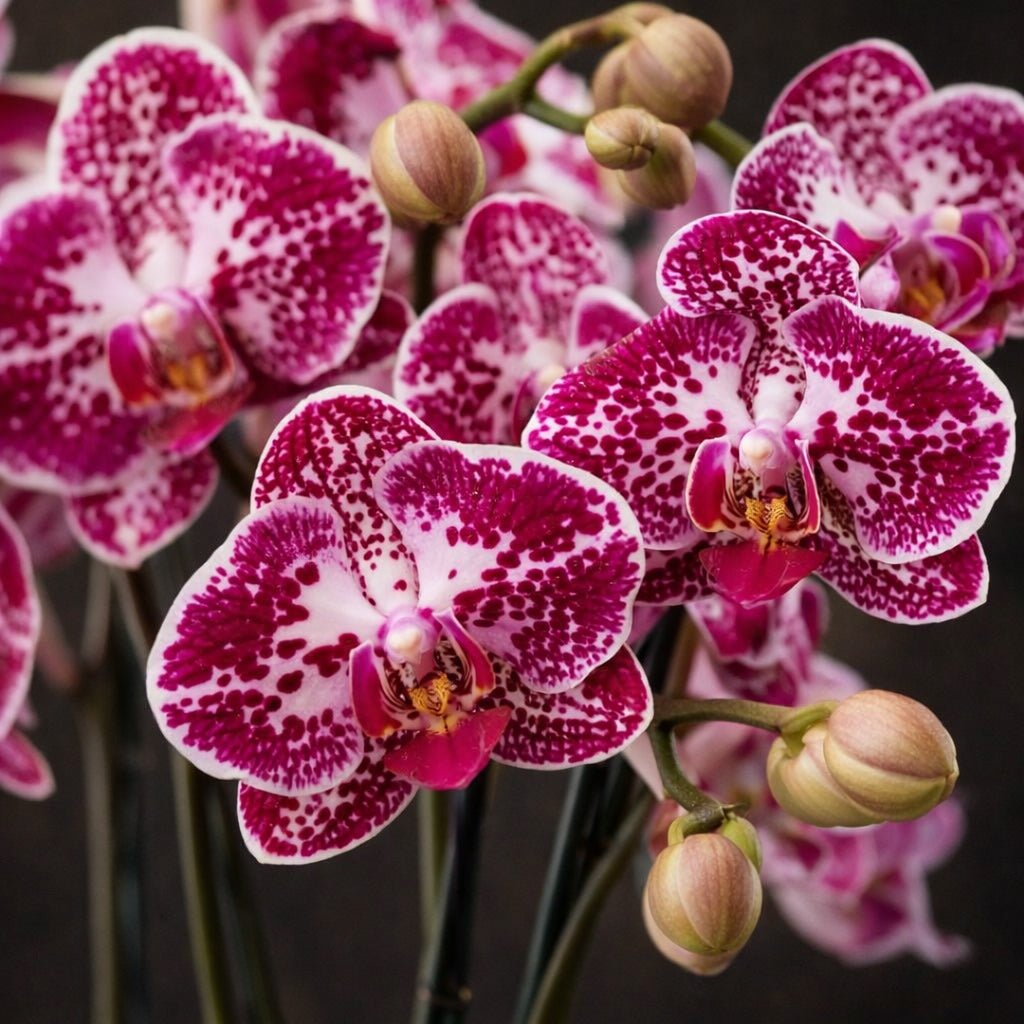 Embrace the stunning allure of our Signature Cerise Orchids, where each Phalaenopsis specimen is expertly positioned in an elegant planter to form a timeless botanical composition. This refined arrangement commands attention with its sophisticated presence, creating an unforgettable focal point that resonates with those who appreciate cultivated beauty and artistic restraint.